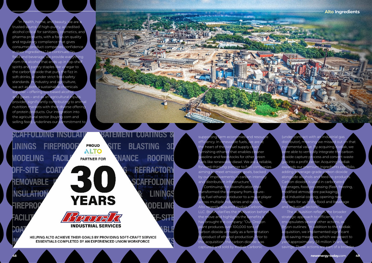 Continuing the diversification that transformed the company from a pureplay fuel ethanol producer to a major player across multiple industries and sectors, Alto recently acquired Kodiak Carbonic LLC. Bryon clarifies the motivation behind the move and highlights the benefits it has brought the company:“ Our Oregon plant produces over 100,000 tons of carbon dioxide annually as a fermentation byproduct of ethanol production. Prior to this acquisition, the carbon dioxide was captured and sold by Kodiak Carbonic