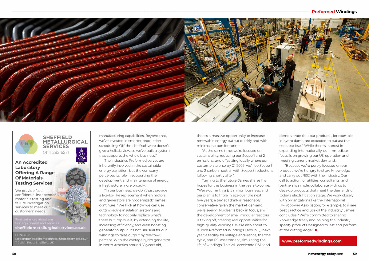 Turning to the future, James shares his hopes for the business in the years to come:“ We’ re currently a £ 15 million business, and our plan is to triple in size over the next five years; a target I think is reasonably conservative given the market demand we’ re seeing. Nuclear is back in focus, and the development of small modular reactors is taking off, creating real opportunities for high-quality windings. We’ re also about to launch Preformed Windings Labs in Q1 next year; a facility for voltage endurance, thermal cycle, and PD assessment, simulating the life of windings. This will accelerate R & D and