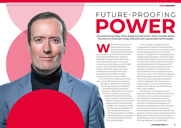 With more than 20 years of global experience and a mechanical engineering background, Javier Cavada currently serves as the President and CEO for Europe, the Middle East, and Africa( EMEA) at Mitsubishi Power( Mitsubishi). As the demand for power continues to increase around the globe, we gain insight into how Javier is leading Mitsubishi’ s efforts in the EMEA region with a goal to decarbonize existing infrastructure and explore advanced technologies that accelerate the energy transition.